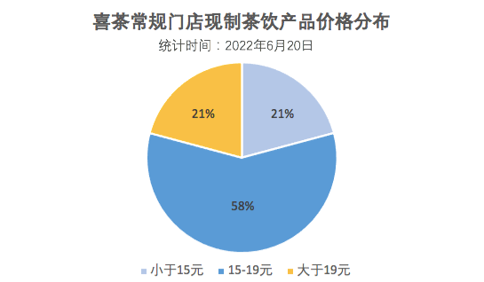 作为高端品牌,喜茶曾经的单价在30元左右,如今进一步发力15-20元矩阵,试图在中端市场寻求更多份额。以6月20日“多肉桃李”上新当天为例,喜茶常规门店菜单的现制饮品产品SKU中,19元以下产品占比已近8成。