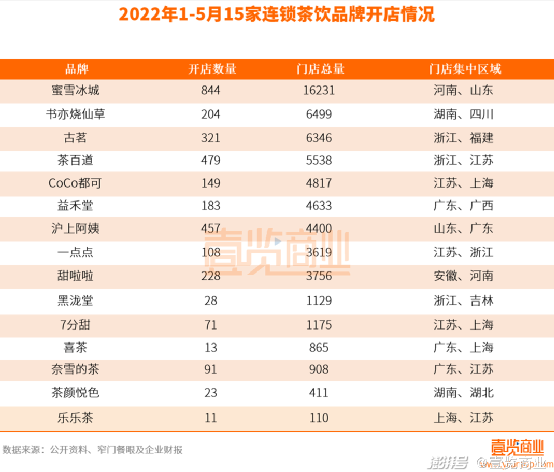 今年新开的门店数据也显示,喜茶、奈雪的开店速度远不及中低端品牌。2022年1-5月,国内主要的15家连锁茶饮品牌共开新店3210家,平均每月开店数量为716,而奈雪开店91家,喜茶仅开店13家。