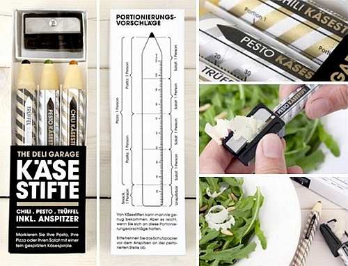 铅笔刨花真的能吃么?由德国广告公司 Kolle Rebbe 所创意的这套 Parmesan Pencils(帕尔马奶酪铅笔)刨出来的铅笔花,你就放心加到菜里吧。对于文具控来说,是不错的聚餐噱头哟!