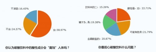 你认为碳酸饮料中的酸性成分会“腐蚀”人体吗?58.97%的人选择了会。就这个问题,我们采访了中国农业大学食品学院营养与食品安全系主任何计国和国中国营养学会会员家二级营养师王旭峰。
