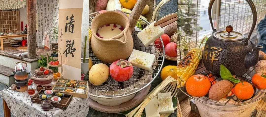 而且,除了煮茶之外,当下还有不少商家创造了围炉煮酒、围炉煮奶茶、围炉煮红酒等相关的场景。