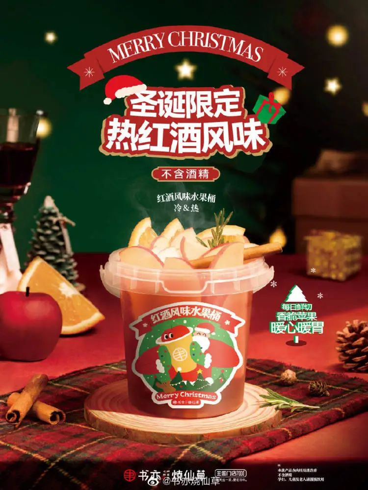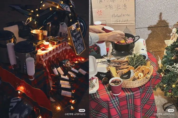 “只是没想到,附近卖热红酒这么少”,以去年讨论热度为标准,阿城想象中的市场竞争是“每走几十步便有一个摊位”。随着天气转凉,阿城把摊位设置在校内,还增加了咕卡(韩文“贴卡”音译)、热奶宝等新晋顶流。去年初冬,上海一家超市在店门口摆摊售卖现煮热红酒,意外地成为当季顶流,顺势刮起了热红酒热潮。南京、杭州、成都、深圳等地的酒吧以及繁华的商业街上,咕噜咕噜冒热气的炖锅旁摆着“赚不到钱,只有浪漫”的揽客标语。一些品牌商家迅速将流量密码转化成可变现的商机。据天猫新生活研究所数据,去年12月以来,热红酒在天猫的销售额同比增长了5倍。肉桂、八角等成为热红酒的最佳伴侣,销量也有所增长。喜茶、书亦烧仙草、CoCo都可等奶茶品牌纷纷顺势推出热红酒单品。书亦烧仙草率先推出一款“热红酒风味水果桶”,售价18元一杯,圣诞期间在全国7000家门店上新。