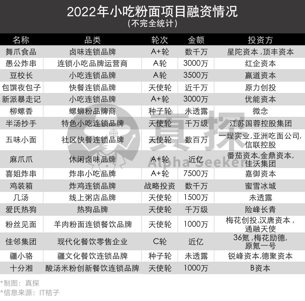 相比于曾经动辄融资几个亿的“直营餐馆”,小吃粉面项目在2022年有更加诱人的特性。