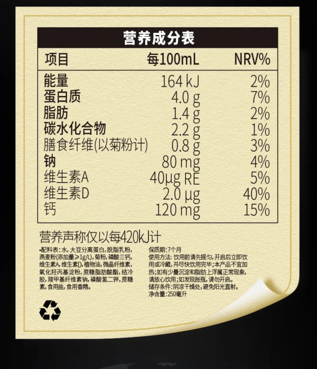 目前,市面上主打“动物蛋白+植物蛋白”概念的即饮产品并不多见,但有不少融合了牛奶和植物成分的产品,如银鹭花生牛奶、伊利谷物牛奶等。相比这些传统产品,达能新品的成分搭配则取了个巧,既有牛奶和大豆这些为人熟知的蛋白来源,也添加了燕麦这一近年来在中国走红的植物奶原料。