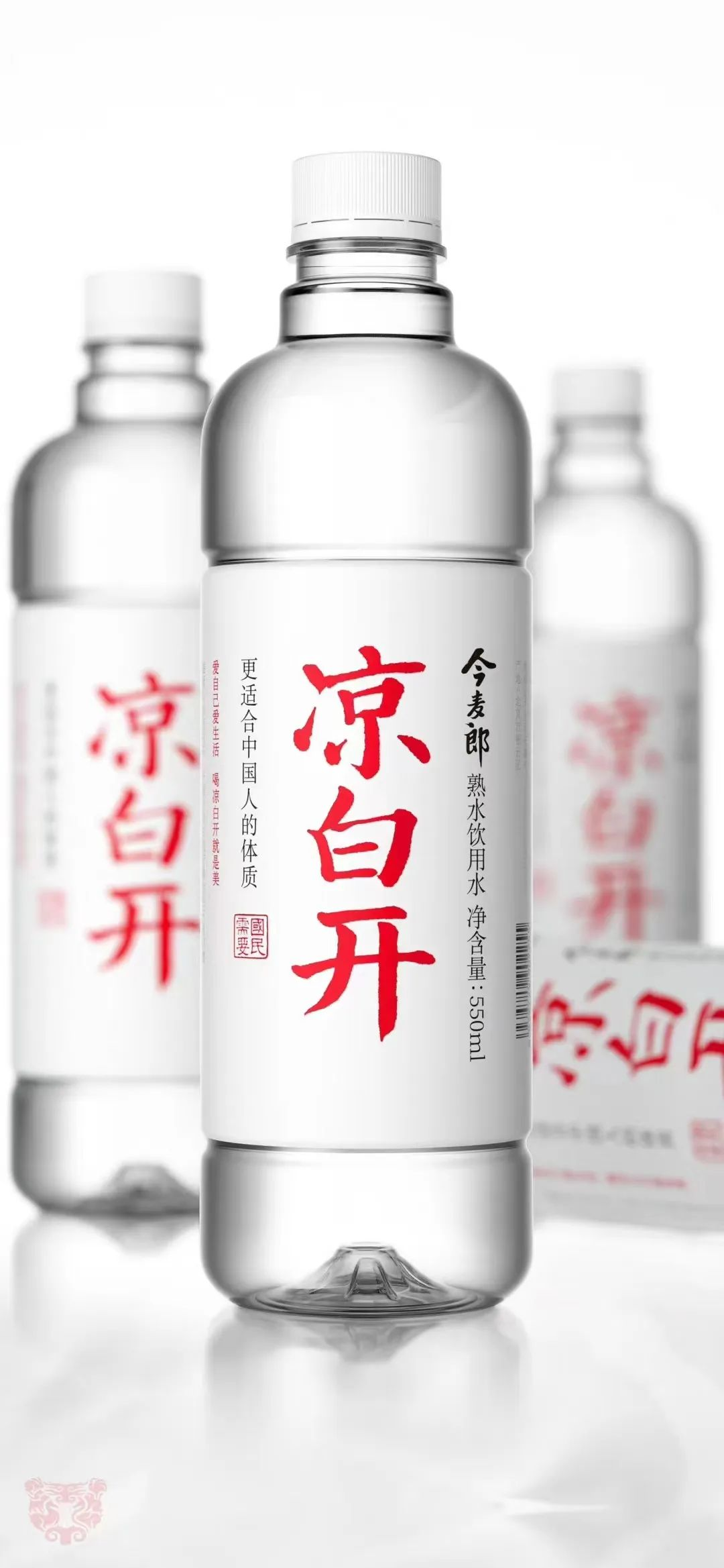 视觉层面,新包装上今麦郎凉白开将「凉白开」从黑字变为红字,强化跟「熟水」品类的联想,同时通过红白撞色的设计强化终端视觉呈现,让线下场景产品露出更具辨识度,打造自身的视觉锤。