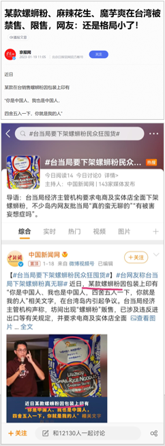 事情的起因是,品牌的一款产品包装上印着“你是中国人、我也是中国人,四舍五入一下,你就是我的人”在台湾地区售卖,引发了岛内关注,进而有不少媒体跟进报道。不过在这件事情刚火起来的时候,几乎所有的报道里都把好欢螺的品牌名隐去了,只用了“某品牌”、“某款螺蛳粉”来替代。
