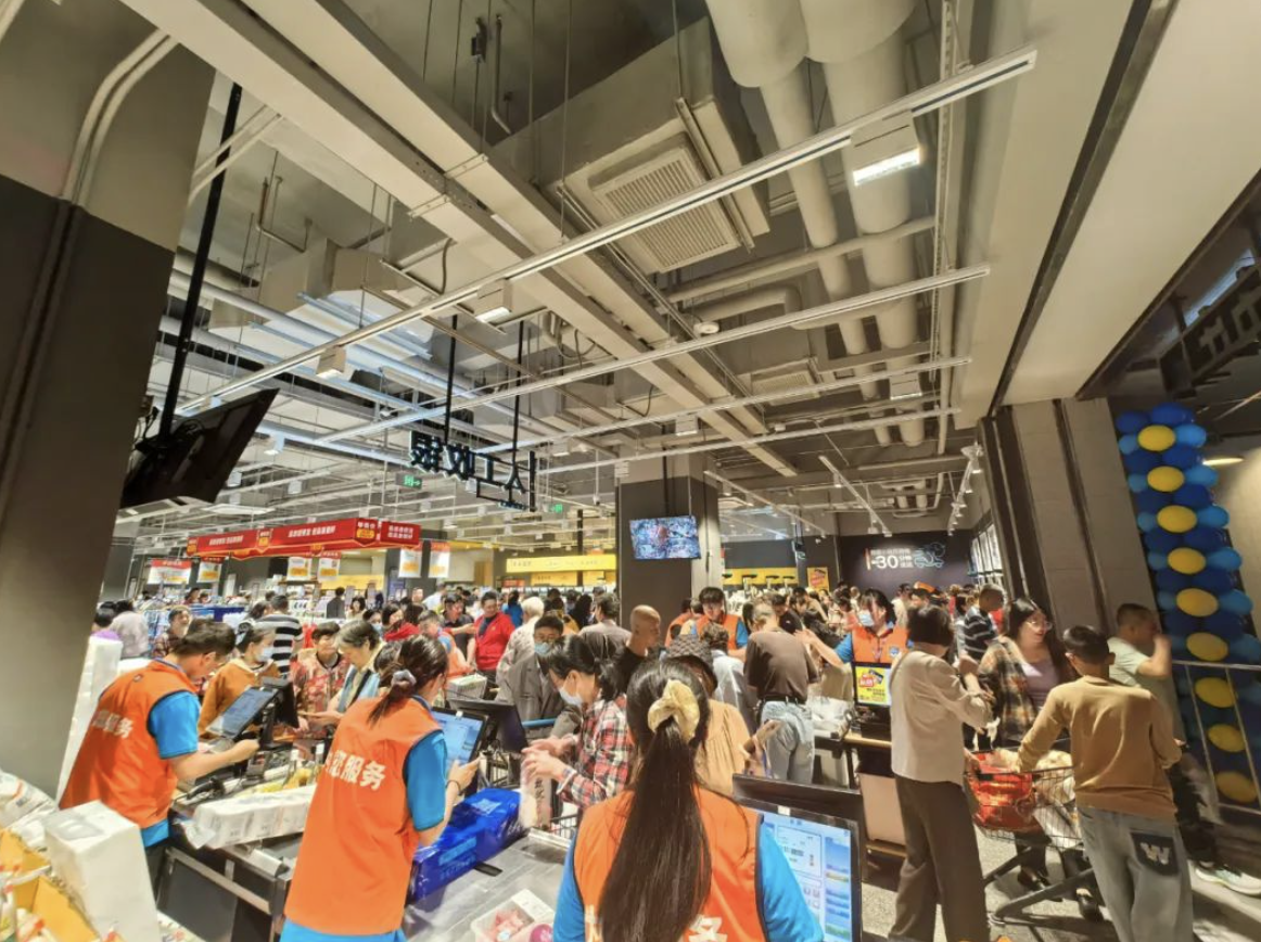 在无锡圆融广场店,大量顾客们早早就等在门口,门店不得已在7:30就开门营业,卖场迅速挤满了顾客!由于客流过大,后续的时段,门店只能采取阶段性地对人流进行控制。