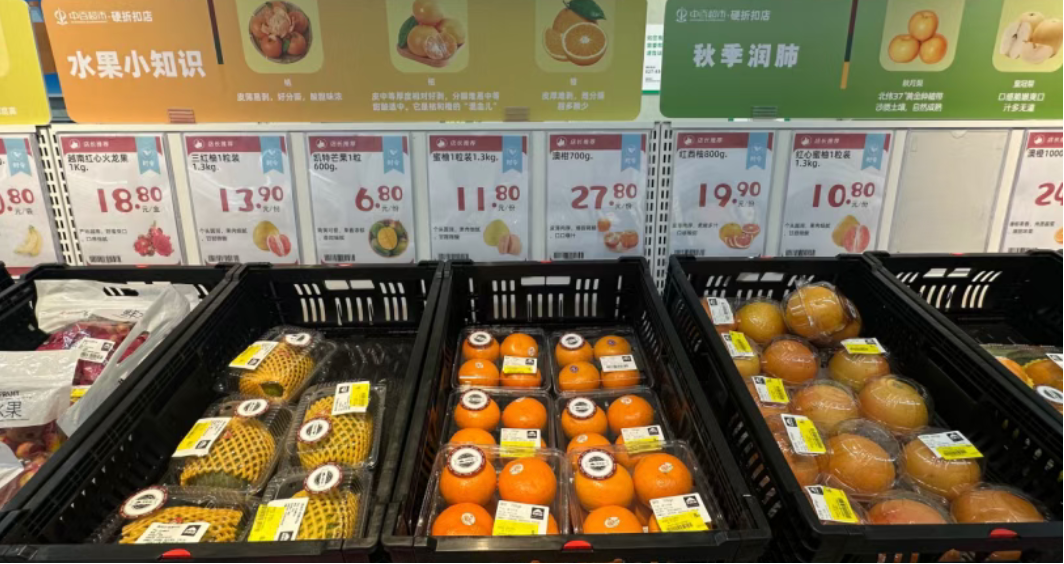水果产品方面,以时令、季节限定商品为主,同时还会设置水果导购牌和水果小知识,颇有“胖改”的味道。