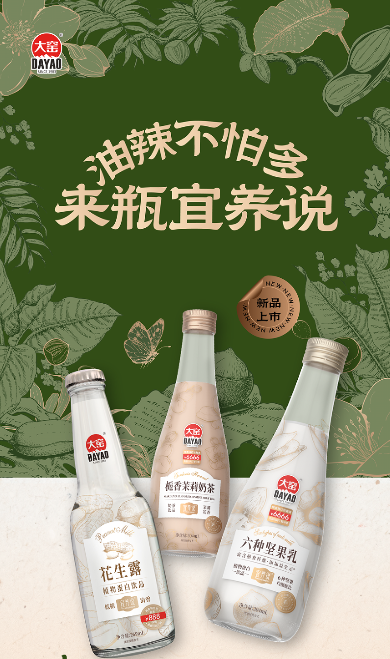 近期,大窑饮品以战略级新品——“宜养说”植物蛋白饮品切入市场,推出六种坚果乳、栀香茉莉奶茶、花生露三款产品。这不仅是一次产品线的扩展,更是大窑向健康饮品赛道战略延伸的关键落子——通过“淡旺季全覆盖+全天餐饮场景全覆盖”的渠道创新,大窑正试图拉开第二增长曲线的新篇章。