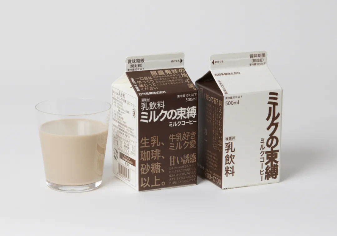 这款牛奶咖啡由高达75%的生牛奶、糖和咖啡制成,保留了天然风味,口感浓郁顺滑。包装采用了两种高对比度的纯色,两面都加粗强调"牛奶の束縛"等关键文字信息。上市不到两个月,销量就达到了6万瓶,一年内卖出超430万盒。