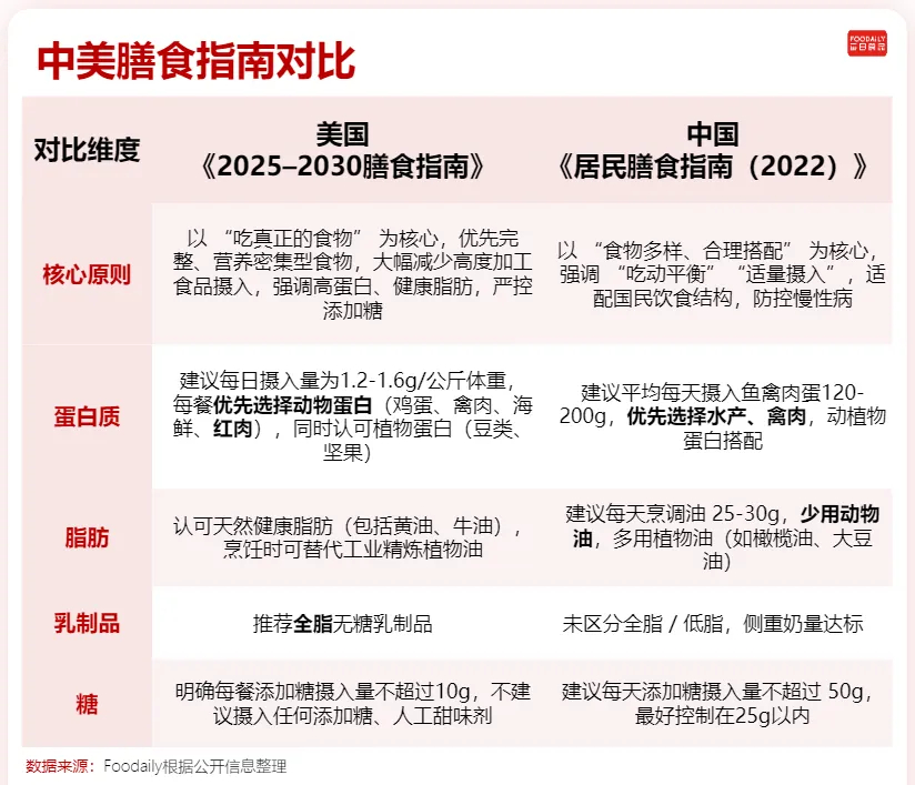 美国指南强化了对“天然食材、高蛋白、健康脂肪、严控添加糖”的直接主张,中国则更侧重“食物多样、合理搭配、吃动平衡”的整体模式。