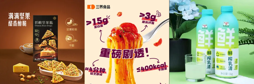 一是老品类升级。原本高蛋白的食物向更新颖的形态、更新的蛋白种类进阶,如妙可蓝多推出的坚果奶酪脆、盒马推出的三蛋白虾片等,通过食材或蛋白原料的重组,带来多重来源的蛋白质。