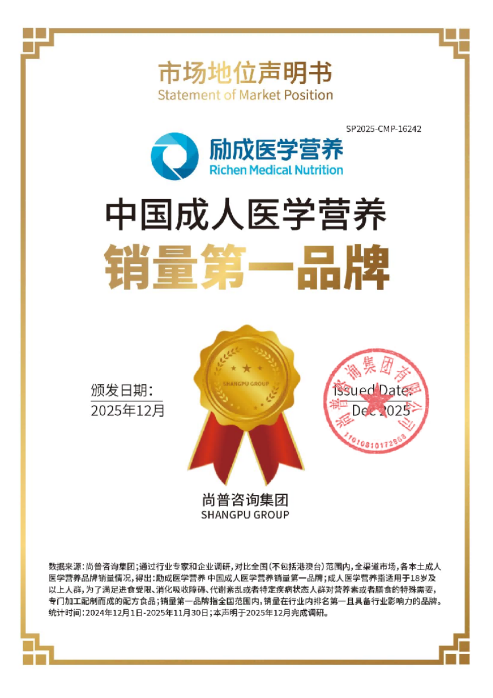 两项市场地位声明的落地,既是市场对励成医学营养26年深耕临床营养的认可,更印证出本土医学营养行业从“营养支持”向“精准营养干预”转型的这一核心趋势。