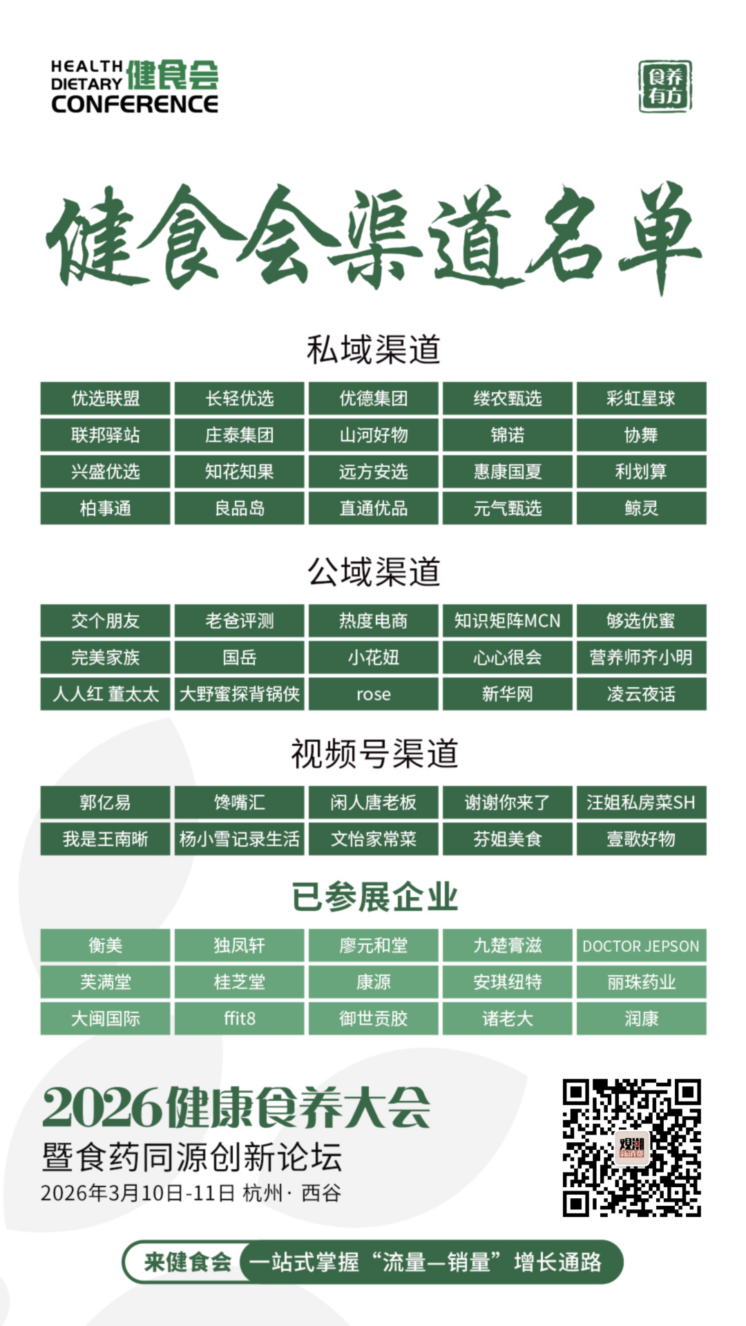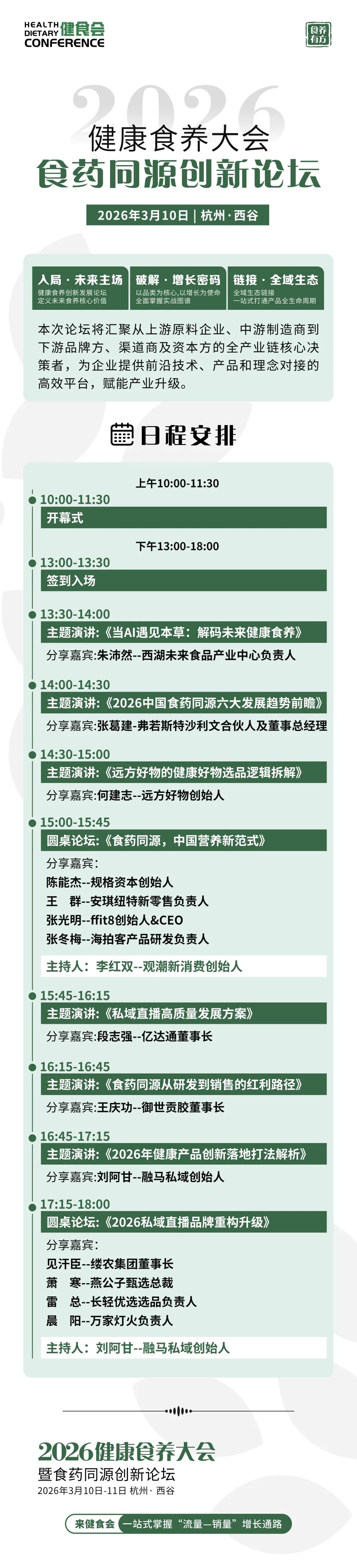“食养有方”2026 健康食养大会暨食药同源创新论坛(下称健食会)将于3月10日-11日在杭州西谷重磅启幕,以 “科技定义产品,渠道重塑增长” 为核心,为全产业链提供一站式破局方案。作为引领行业渠道变革的年度盛会,大会直击产业痛点,用四大核心优势构建增长新引擎。
