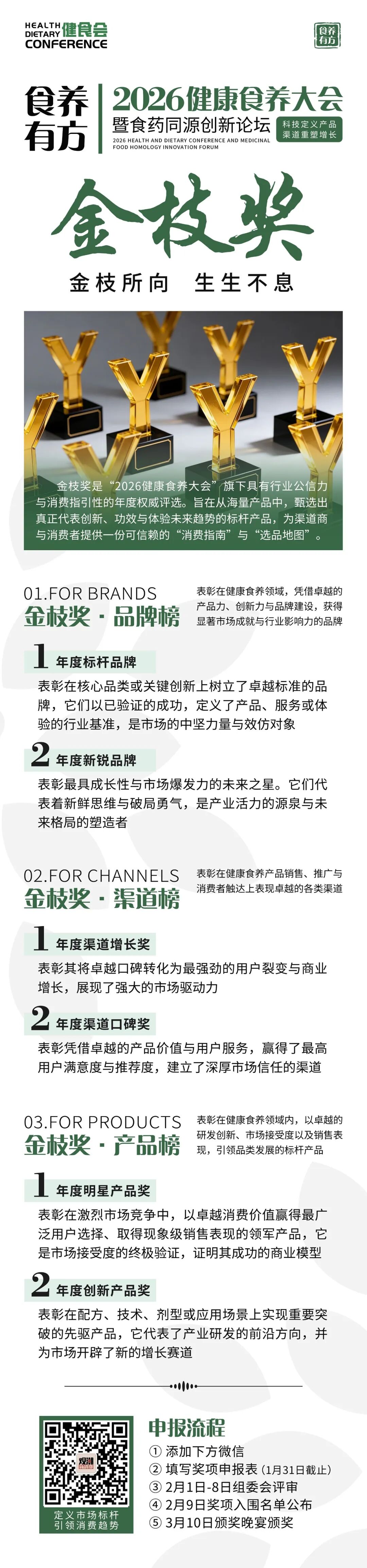 大会旗下设立行业权威评选“金枝奖”,涵盖产品、渠道、品牌三大榜单,旨在定义市场标杆,为渠道与消费者提供可信赖的选品指南。获奖即意味着获得行业顶级认可。