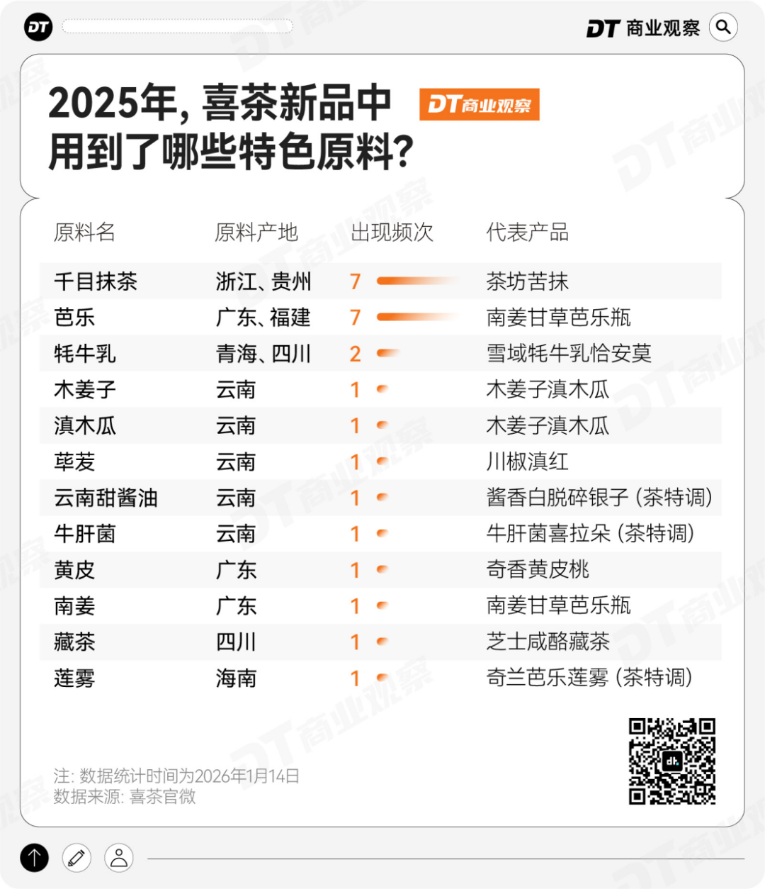 2025年,喜茶开发了不下10种地域特色原料,推出新品,打响“地方牌”。