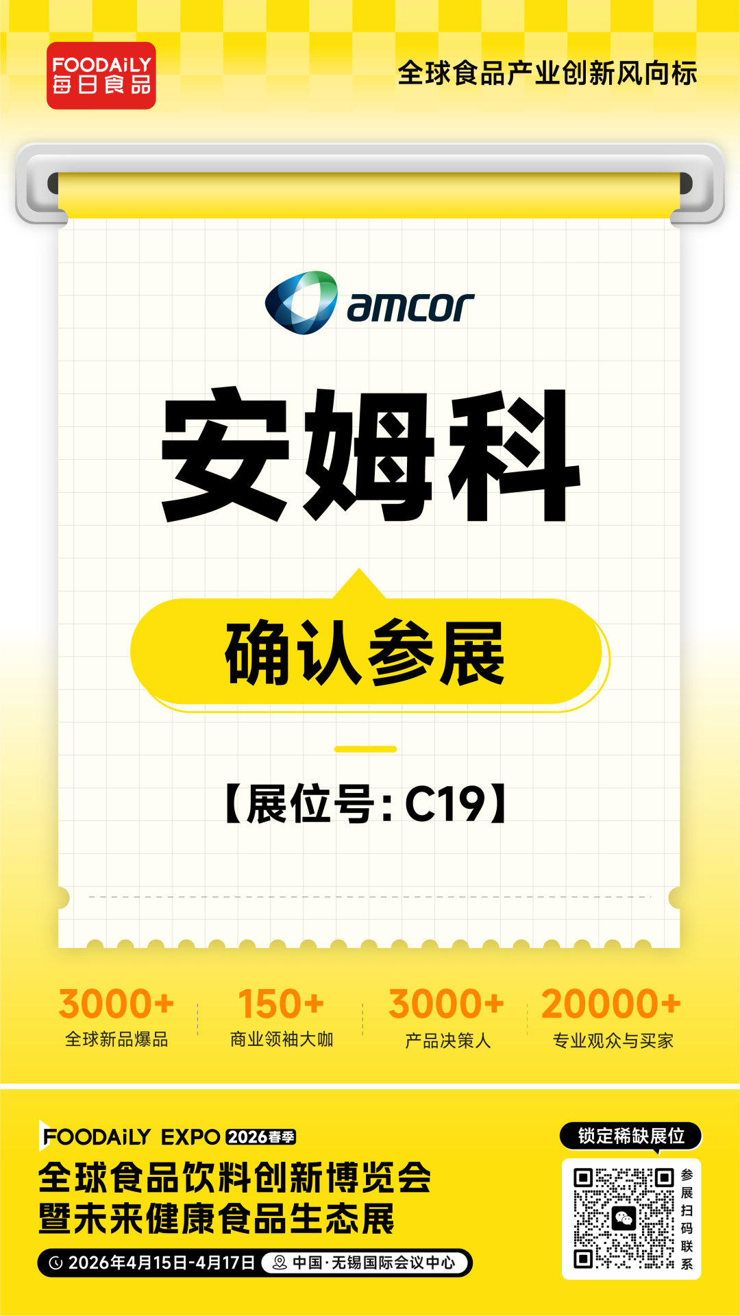 安姆科,作为全球消费品和医疗健康包装解决方案的领导者,专注以专业包装方案赋能多元领域发展。2026 Foodaily创新博览会,安姆科将亮相展会现场,C19展位,诚邀各界伙伴共探包装创新趋势,共筑行业发展新路径。