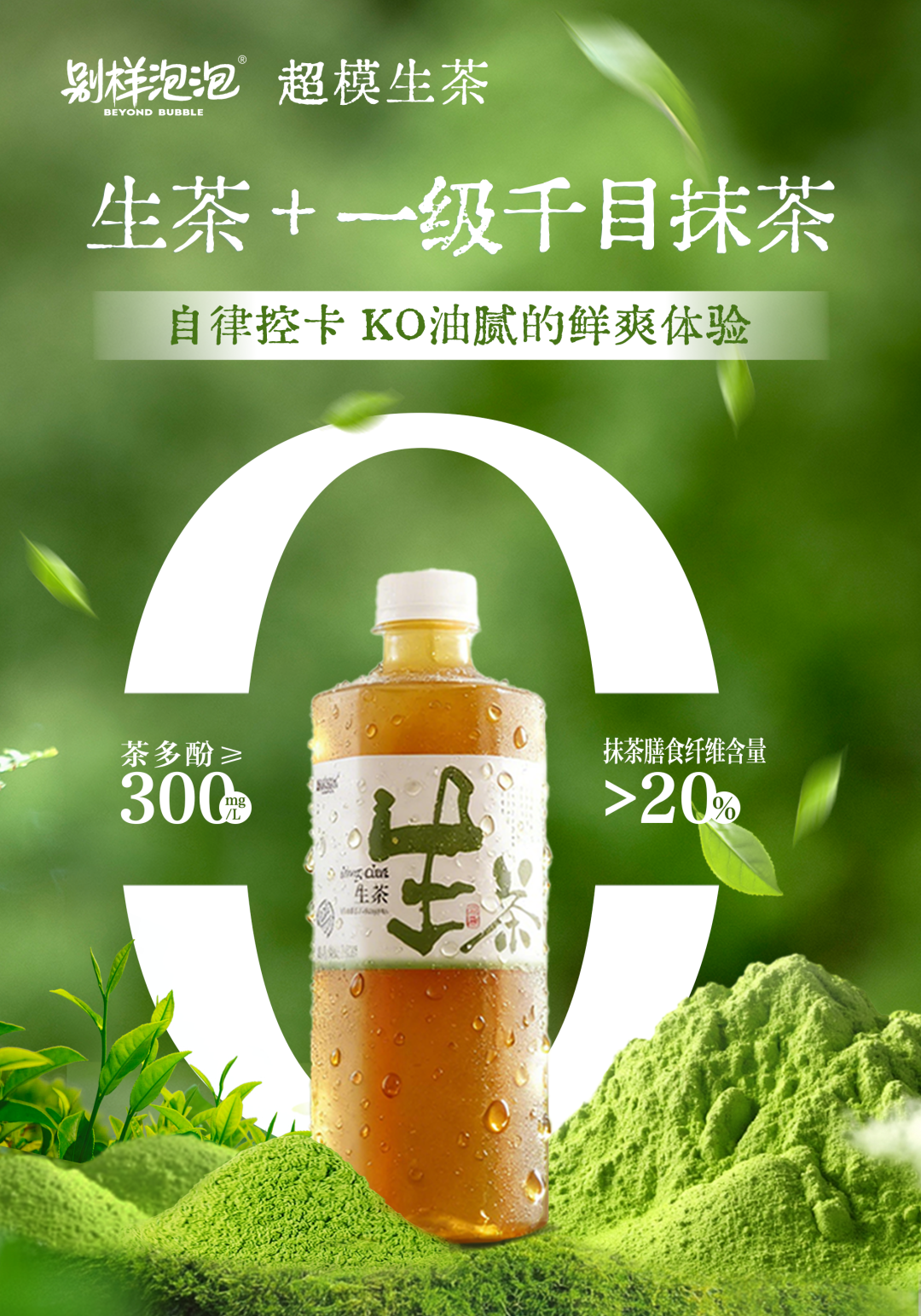 无糖生茶+抹茶,富含膳食纤维和茶多酚(≥300mg/L),是身材管理期的大餐解腻救星 ;