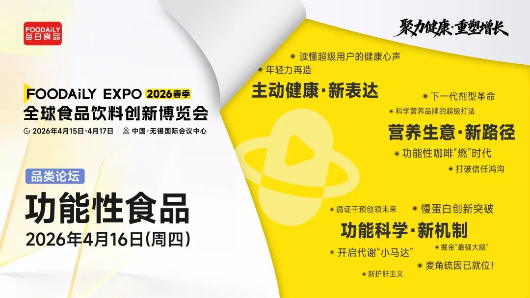 2026年Foodaily创新博览会的「功能性食品」品类论坛中,我们将透过这些爆款案例的实战分享,系统解码他们“硬控消费者”的爆款方法论。