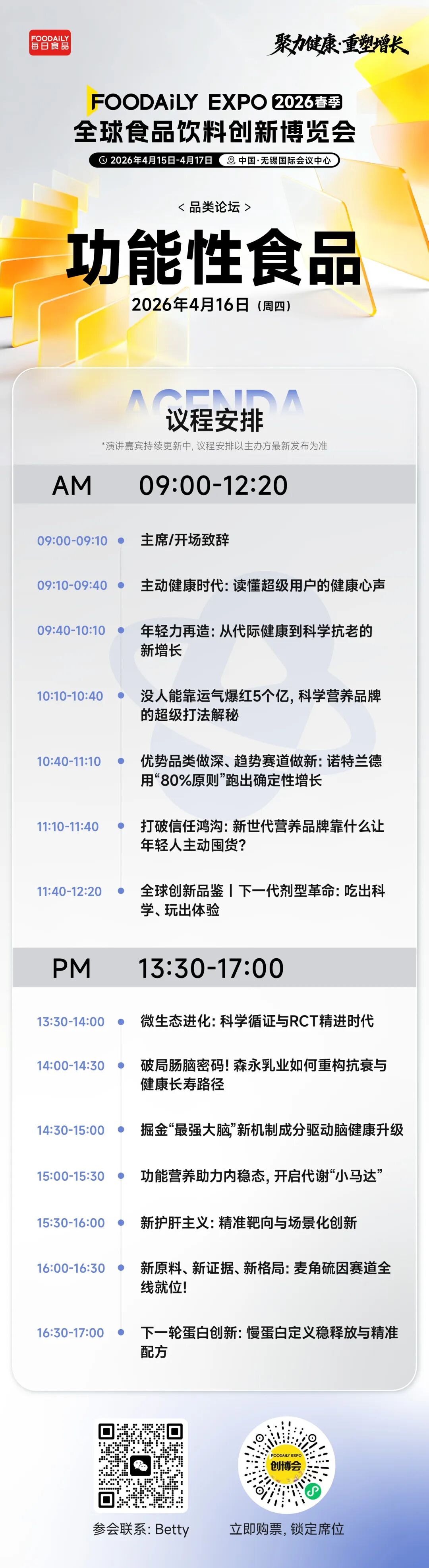 助力品牌前瞻未来的增长赛点,2026年Foodaily创新博览会的「功能性食品」品类论坛中,我们将带来前瞻的创新解决方案解读,让更有商业潜力的品类机会更高效科学地落地。