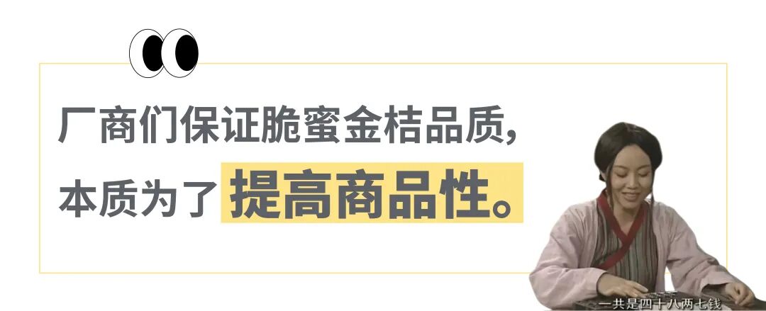 而厂商们保证脆蜜金桔品质,本质为了提高商品性。因此,一颗卖15块的果子用爱马仕橙礼盒和费列罗同款金箔纸包装再合适不过了。桩桩件件,都是为了稳住甜王的身价。