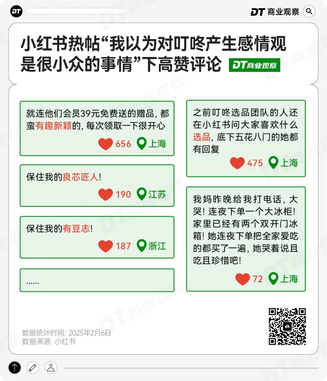 2月5日,小红书@momo发了一篇笔记《我以为对叮咚产生感情是很小众的事情》,起因是自己的一条“我真的很喜欢叮咚,一天下好几单,没事闲着就打开看看又上什么稀奇古怪的小玩意儿了……”的留言被很多人点赞,她才发现原来有这么多人和自己一样对这个APP很有感情。