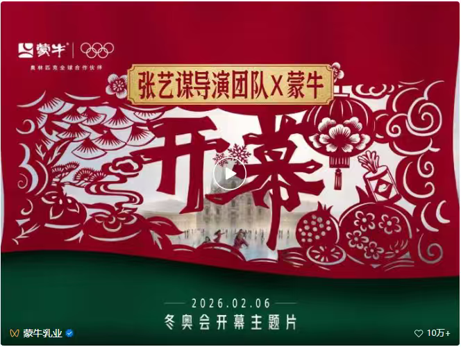 但对蒙牛来说,冬奥开幕大片并不是一次单点的投放和曝光,而是多年奥运叙事的自然延展,更是长期品牌资产的累积场。