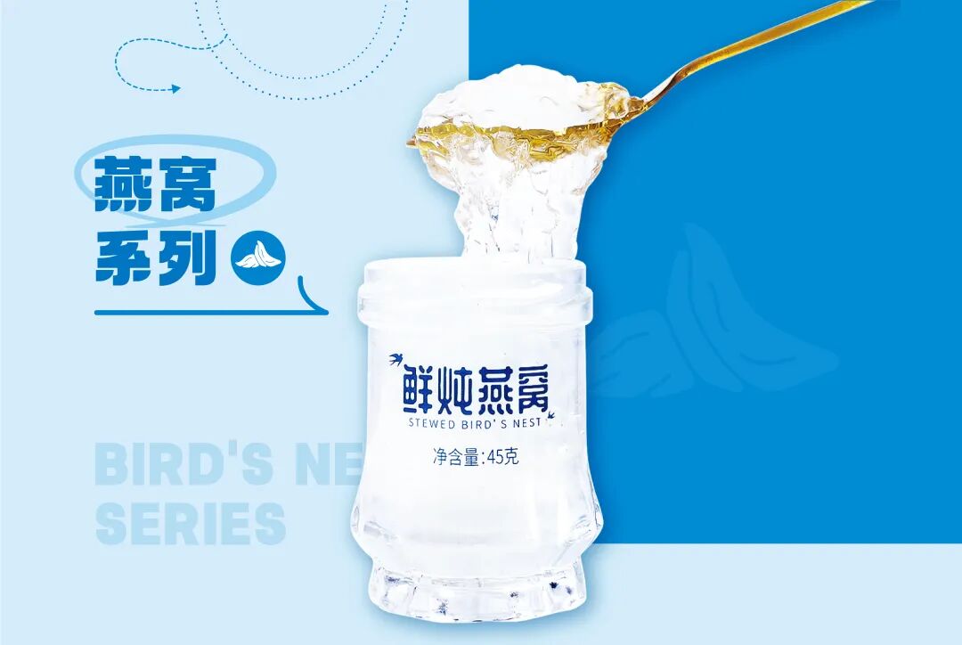 燕窝系列主打即食燕窝产品,采用纯手工挑毛工艺,实现99.99%洁净率,搭配一瓶一码的全程防伪追溯体系,配方纯净,零防腐剂添加,并通过精准控温工艺还原家炖口感。