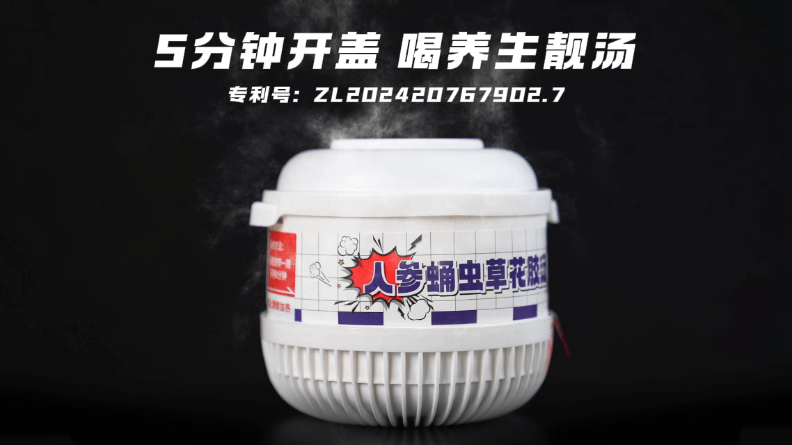 润康药业“自热药膳炖汤”采用国家专利4.0自加热器(专利号:ZL 2024 20767902.7),旋转碗底一圈即可启动,5分钟快速加热即食,设计安全、操作简便。