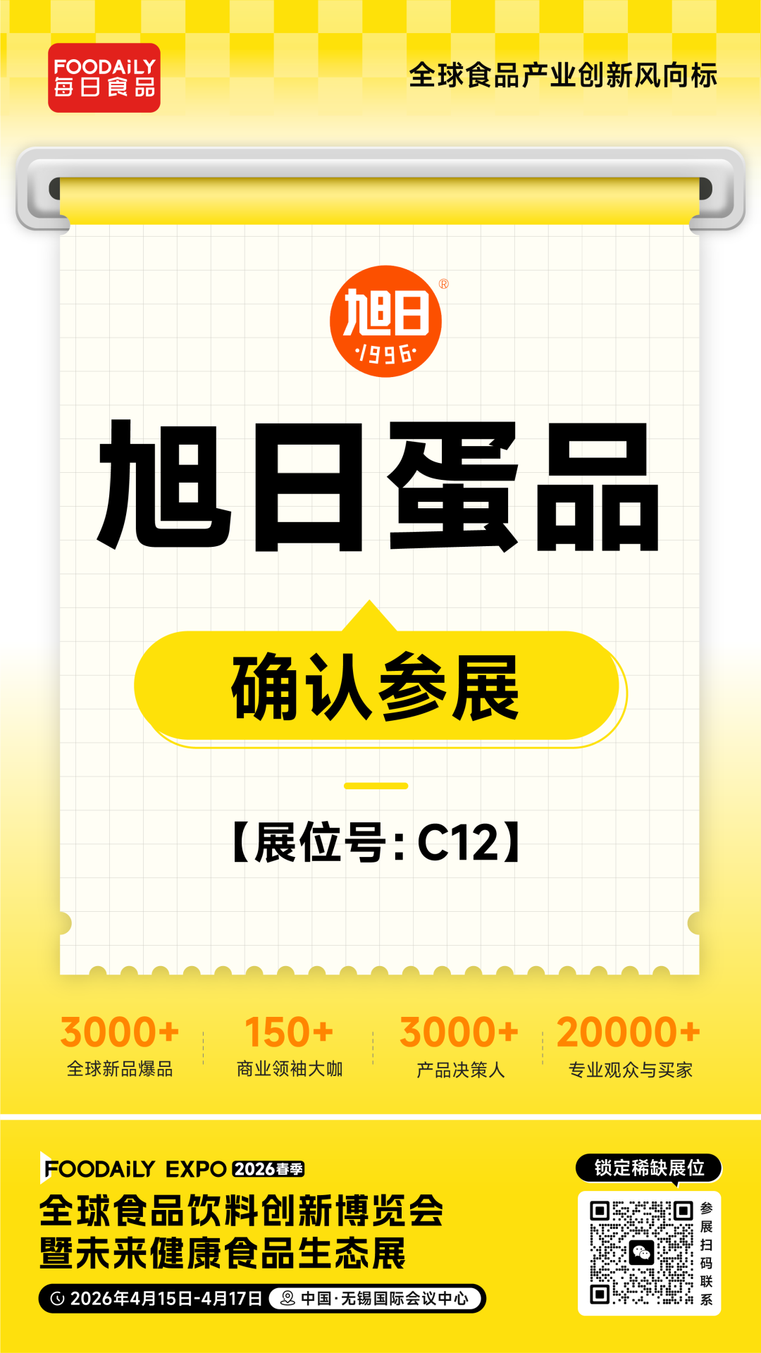 2026 Foodaily创新博览会,旭日蛋品将携旗下明星产品亮相于无锡国际会议中心,C12展位,邀业界同仁共探蛋品行业发展新路径,共筑安全食品产业新典范。