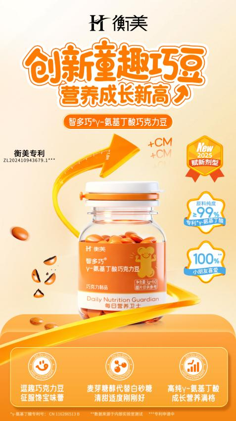 所以衡美通过对宝妈的关爱痛点分析,例如希望孩子变得更聪明、长得更高、免疫力更好等等,再结合衡美健康的自身优势开发儿童产品。比如我们创新推出儿童营养巧克力豆的剂型,就很好地解决了这一痛点;