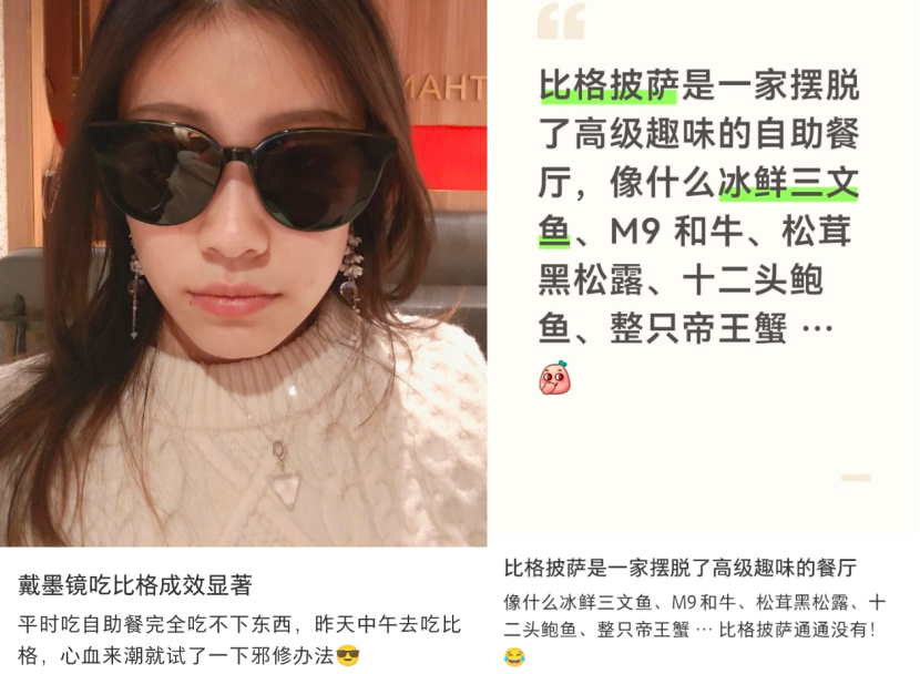 网络上关于比格比萨的讨论。(图/小红书网友@湜瑶、@hoho炉边闲话)