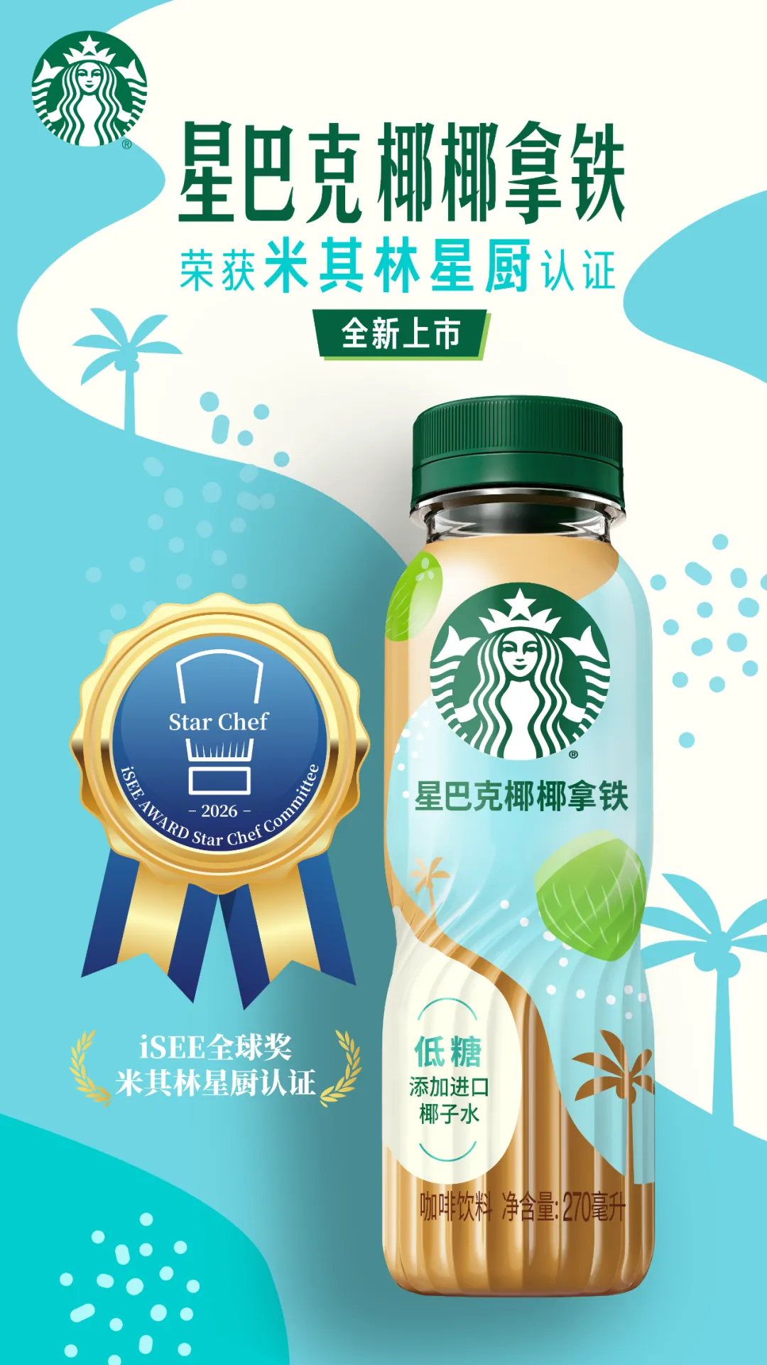 近日,“iSEE全球奖 · 米其林星厨认证”名单揭晓,星巴克全新上市的瓶装即饮新品「椰椰拿铁」凭借创新配方与卓越风味,从众多参选产品中脱颖而出,成功斩获此项国际殊荣。