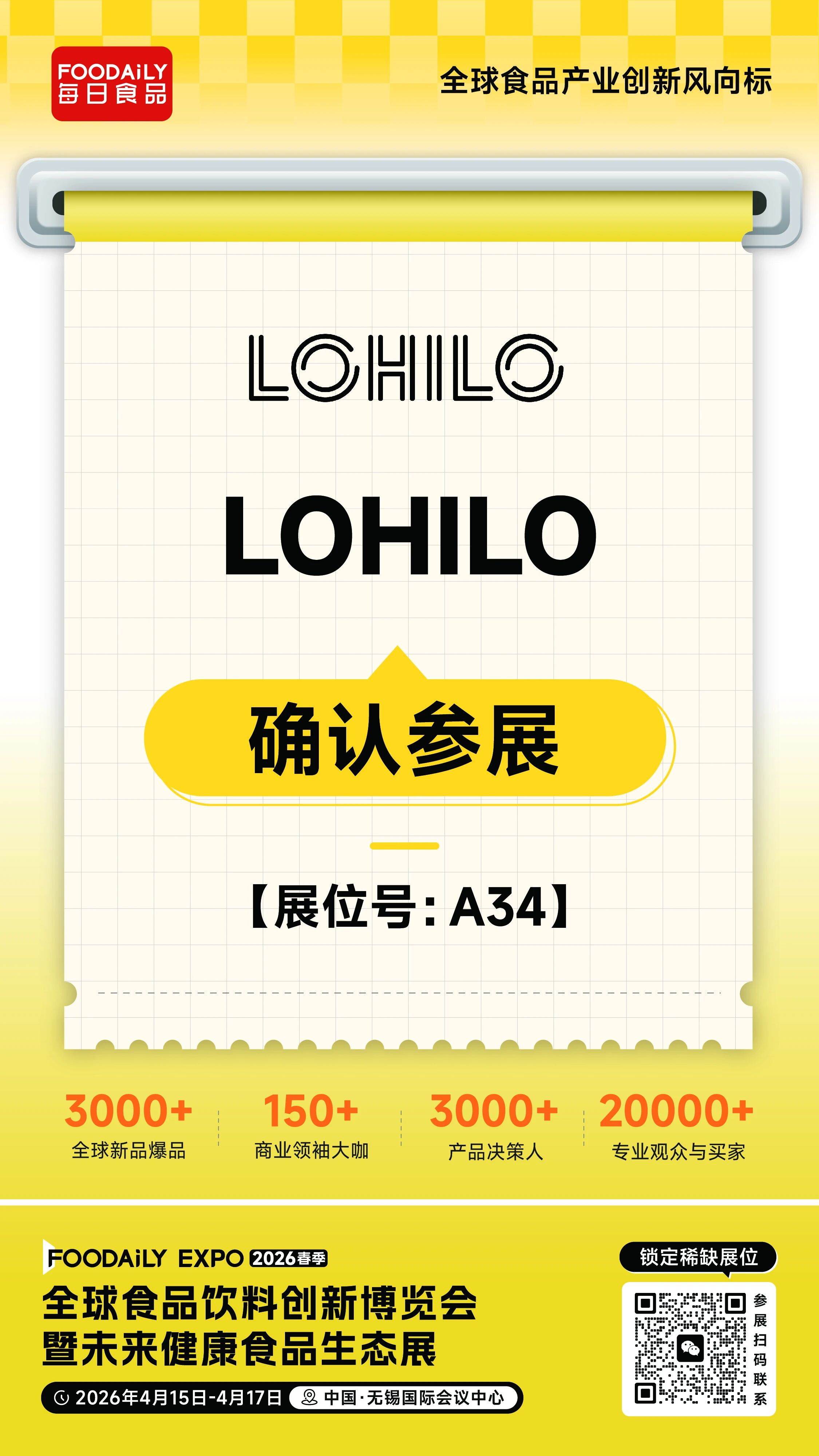 2026 Foodaily创新博览会,LOHILO乐嗨乐将携旗下明星产品亮相无锡国际会议中心,A34展位,邀业界伙伴共探健康食品创新之路,共赴美味与健康兼得的新食代。