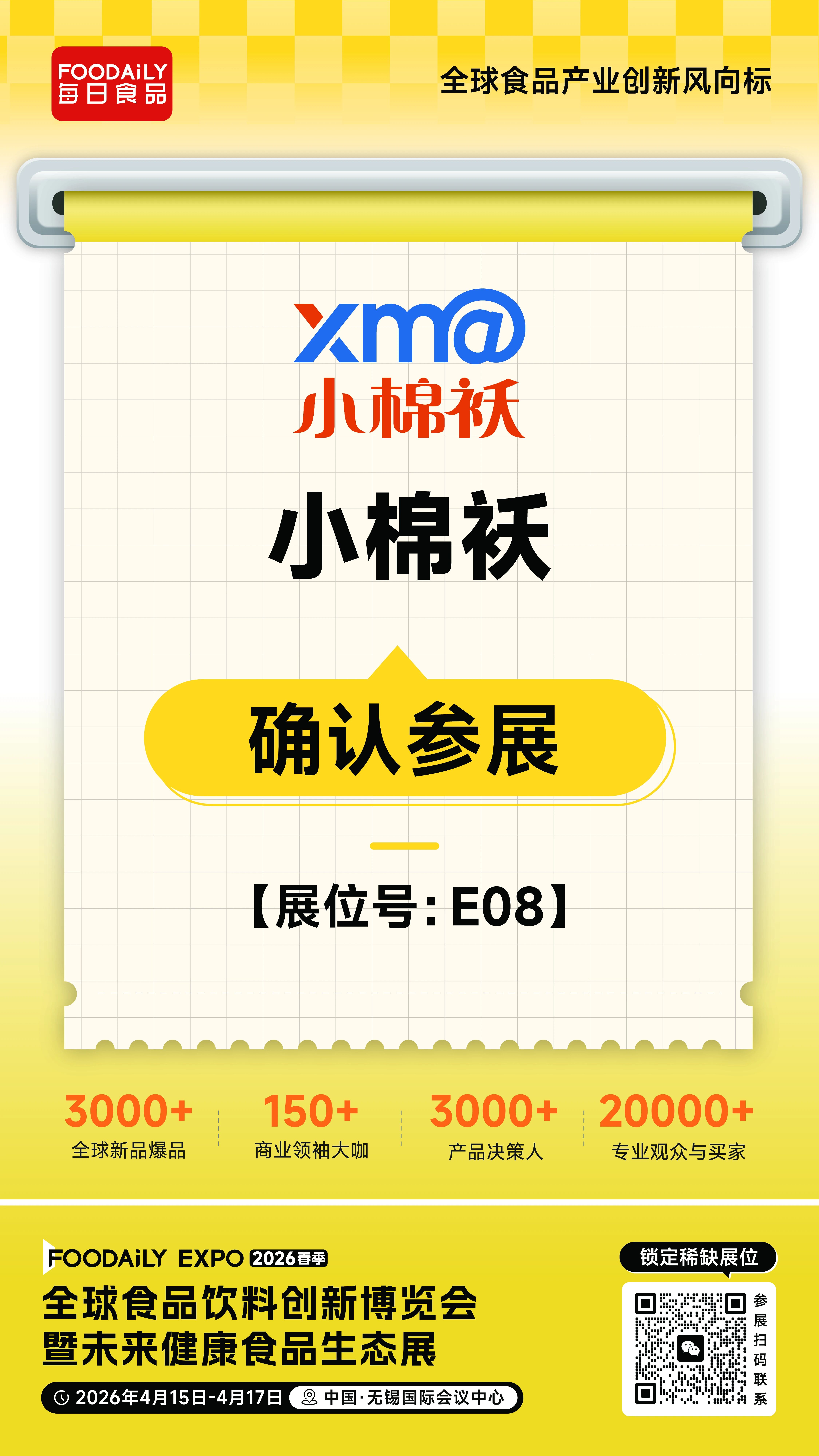 在众多参展力量中,展会迎来一则重要动态——食品饮料电商代运营标杆服务商【小棉袄】已正式确认参展!作为专注全域数字营销的先锋品牌,小棉袄的加入将为2026 Foodaily创新博览会带来前沿全域数字营销创新理念,与行业同仁共探数字营销发展之路。