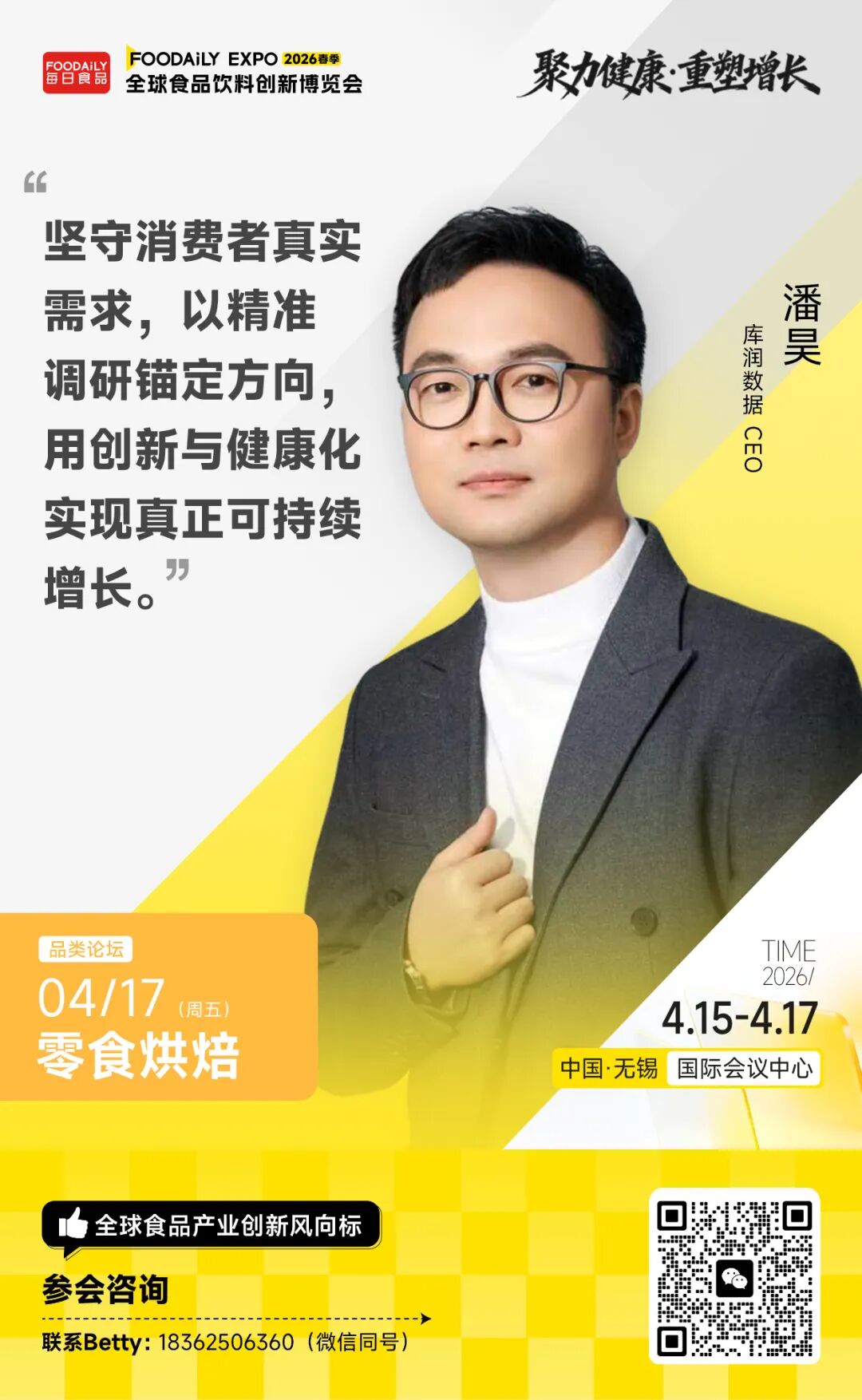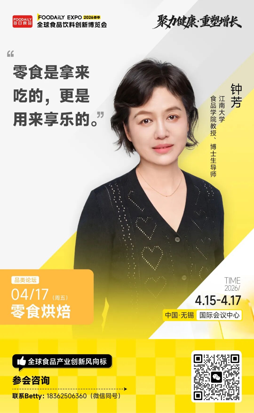 以「聚力健康 · 重塑增长」为主题,2026 Foodaily全球食品饮料创新博览会将于2026年4月15日-17日,在中国·无锡国际会议中心举行。我们特别策划推出「零食烘焙」品类论坛、以及「低GI食品」主题论坛,将从感官体验趋势、爆款案例拆解、低GI的标准重构和人群切入,挖掘潜在市场中蕴含的更多增量。