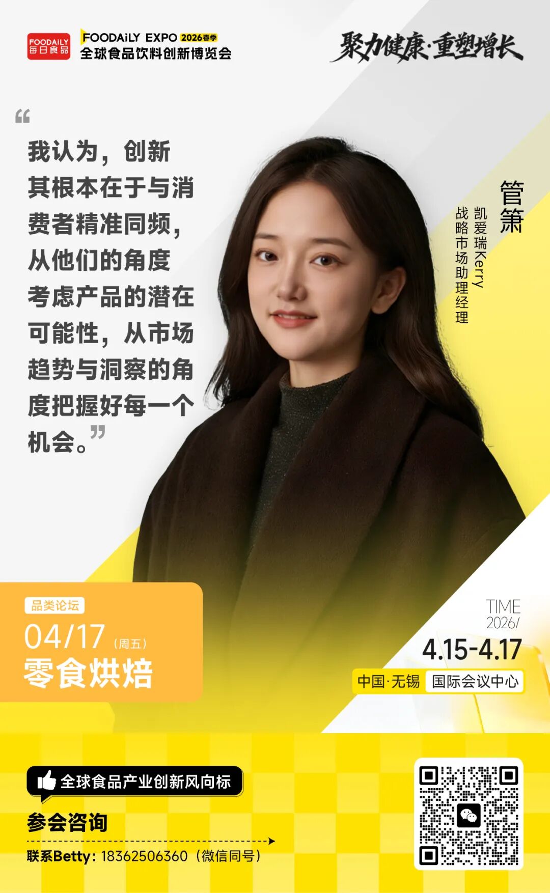 凯爱瑞Kerry 战略市场助理经理管箫将从市场增长数据出发,解析风味创新的底层方法:从本土到全球,咸味零食下一个风味增长方向是什么?如何用风味图谱与技术创新赋能零食风味体验?并提升溢价、复购与场景渗透,为零食品牌提供可复制的增长路径。
