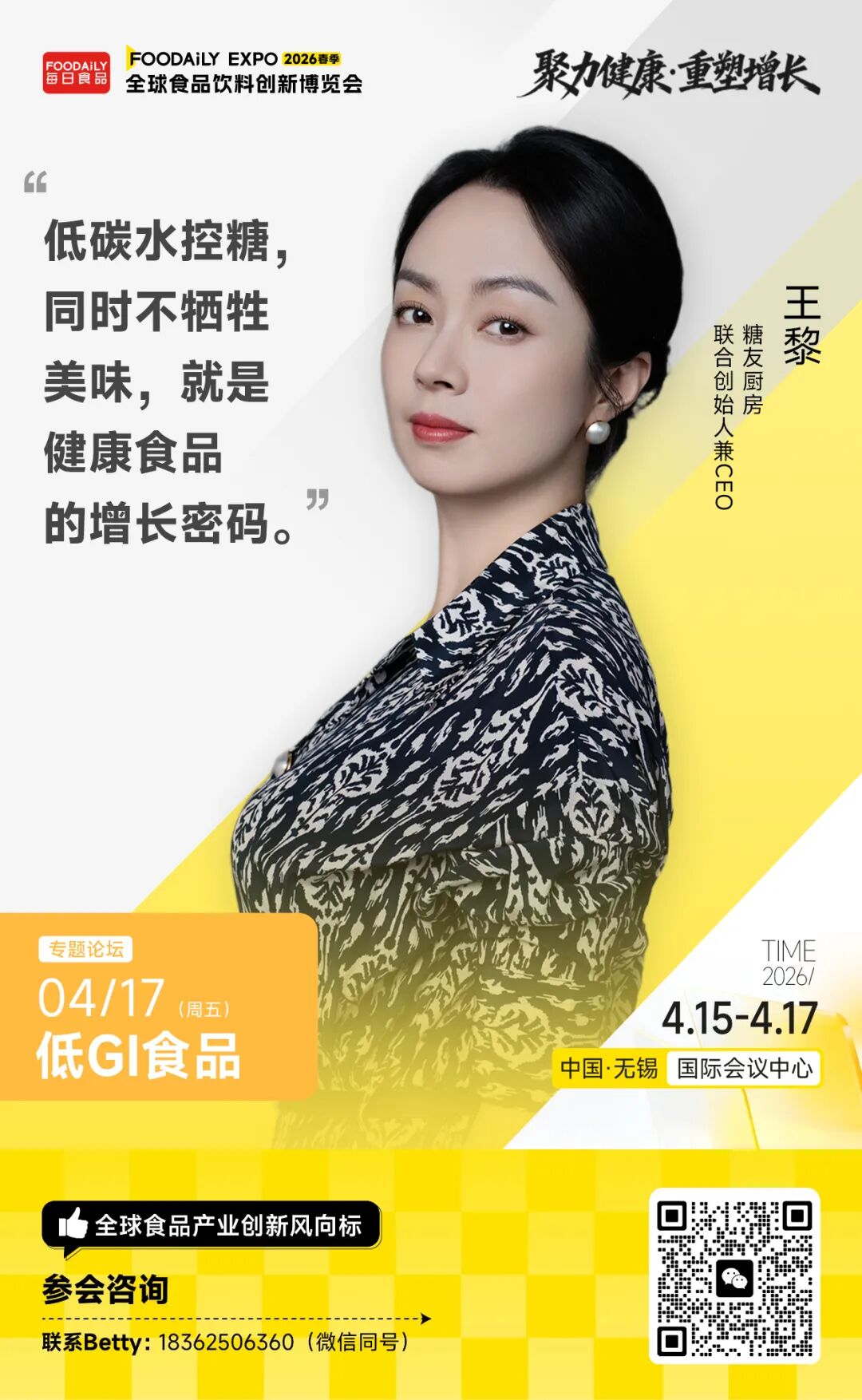 糖友厨房联合创始人兼CEO王黎将从银发糖友的真实控糖痛点出发,探讨低GI饮食如何从科学理念走向日常三餐?依托医学验证与营养干预模型,控糖食品如何从单一产品升级为可持续的慢病饮食解决方案?