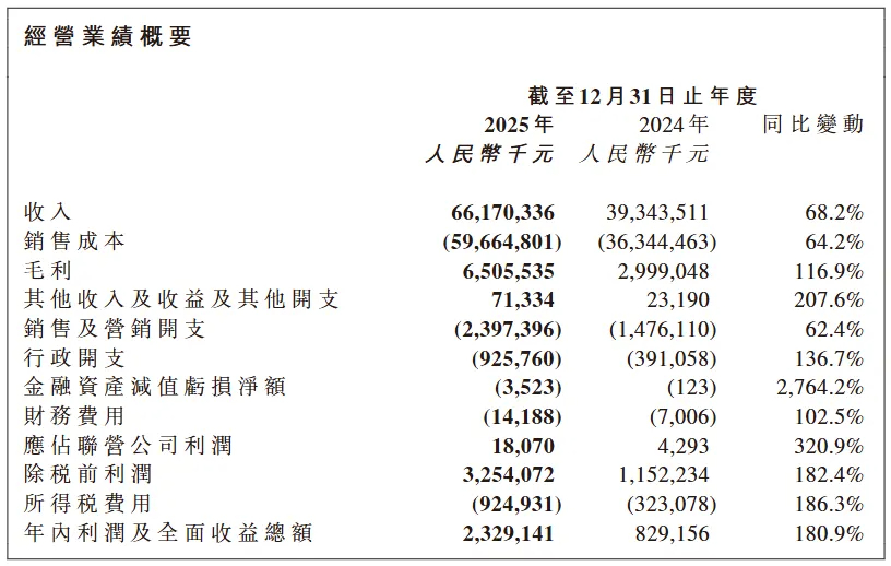 3月31日,鸣鸣很忙发布2025年财报。报告显示,公司门店商品交易总额(GMV)达935.69亿元,同比增长68.5%;实现营业收入661.70亿元,同比增长68.2%;净利润23.29亿元,同比增长180.9%;经调整净利润26.92亿元,同比增长194.9%。业绩增长主要受益于商品销售收入增加及门店网络扩张。