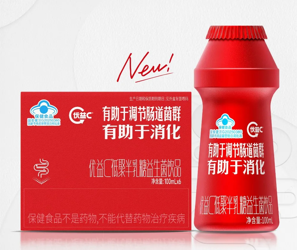 与市面上常见的单一益生菌饮料不同,优益C以副干酪乳杆菌为核心,搭配低聚半乳糖益生元,二者协同作用,更容易被人体肠道利用,让消费者获得清晰可感知的身体反馈。