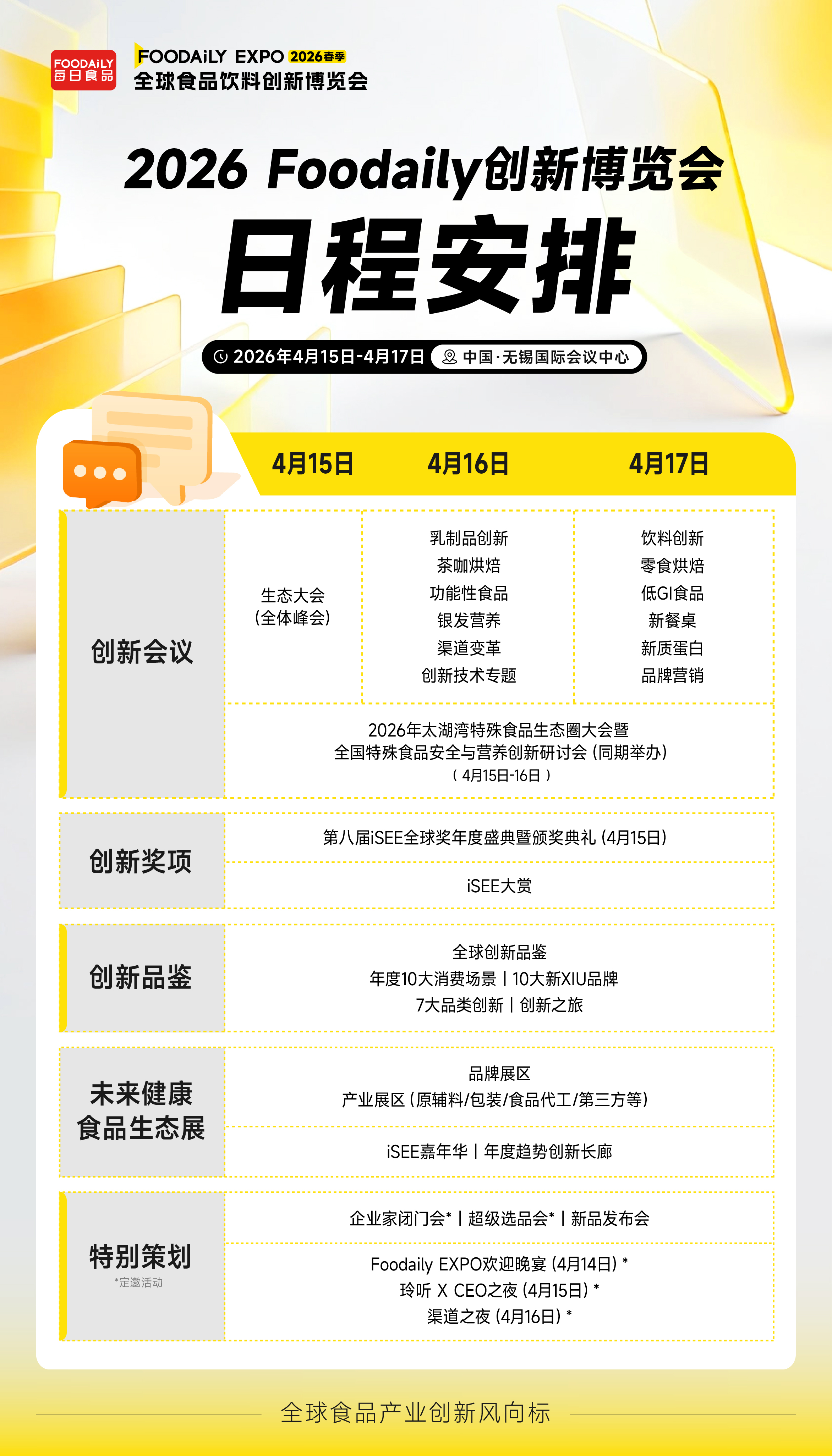 2026年4月15日-17日,中国·无锡国际会议中心,第十一届Foodaily 全球食品饮料创新博览会即将盛大启幕!