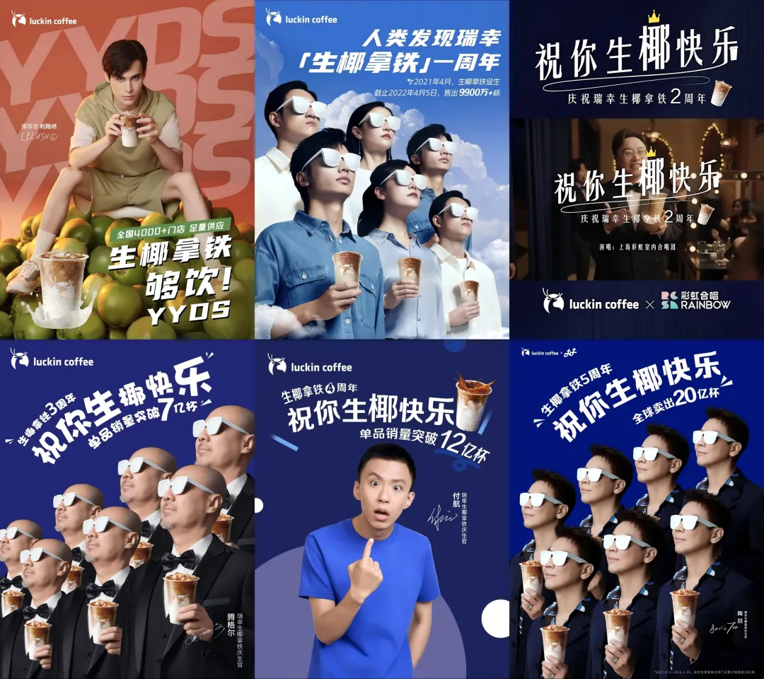 2023年4月,瑞幸邀请上海彩虹室内合唱团创作《生椰拿铁生日快乐歌》;