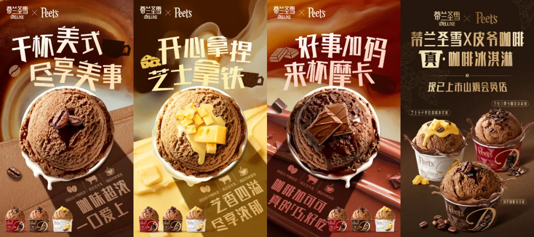 它们在山姆渠道推出的蒂兰圣雪×皮爷咖啡联名咖啡冰淇淋组合装,甄选添加皮爷咖啡浓缩液,采用100%阿拉比卡咖啡豆与牧场直供优质生牛乳,并提供多种风味选择。