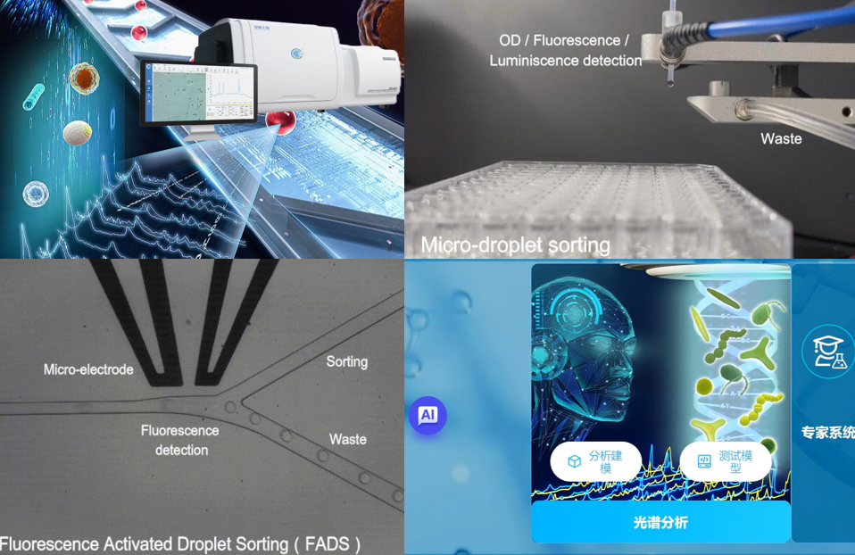 2、超高通量筛选技术平台: 聚焦微生物资源的高效筛选与深度挖掘,集自动化、微流控与人工智能于一体,融合明场、荧光、可见光、拉曼光谱的超高通量细胞/菌株高效筛选技术,突破超高通量筛选、自动化遗传选育等前沿核心技术,培育高质化菌株新赛道。