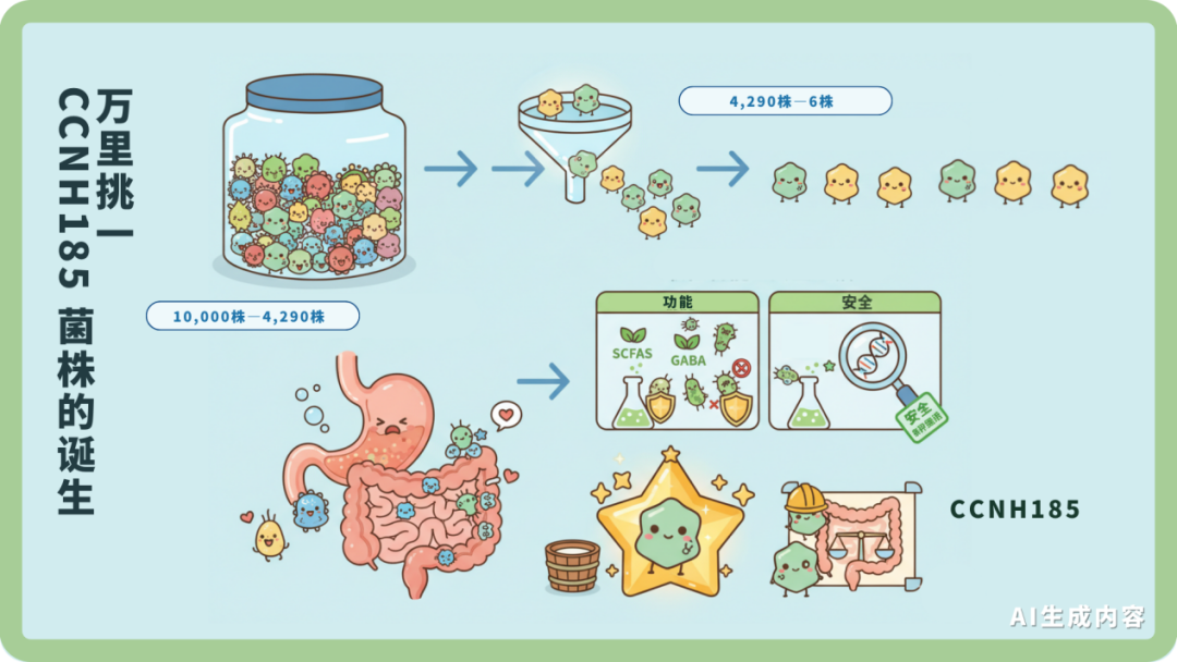 在菌株筛选上,中粮益生菌依托以单细胞拉曼分选为核心的超高通量筛选平台,搭建70余个评估模型,对超10000株源自全国的菌种展开“万里挑一”的科学选拔。历经万株海选、模拟人体消化道的极限生存考验、多维功能与安全评测三大严苛关卡,最终仅有6株菌株脱颖而出,筛选通过率不足千分之一。