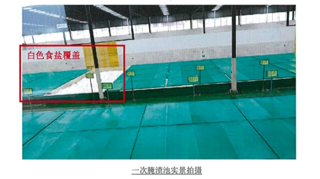 所有精选出来的酸菜原料,首先就被埋在这些厚厚的食盐中,进行“一次腌渍”,在腌渍池边上的每一块牌子都详细记录了腌渍开始时间、腌渍数量等信息。