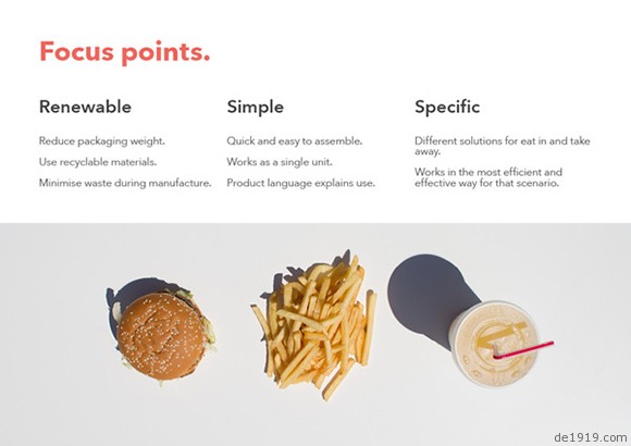每次去快餐店点一堆东西的时候,携带总是很麻烦的,不仅如此,变着花样的各种包装有很多也是浪费原材料。细心的设计师发现了这个问题,巧妙的设计了这样一款包装盒。省事又环保,真的一举两得啊!