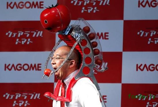 就在世界各大电子厂商争相设计可穿戴设备之际,日本一家蔬菜汁企业26日推出了一款可穿戴西红柿机。