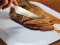 这是一款极其方便的切菜板,切菜板的板身有着一个倾斜的角度,并且一边的边缘处翘起,这样就能很轻松的将切好的菜集在一起,并倒入锅中,同时也能不让食材的汁水流淌到桌面上。在切菜板的另一边还有着尺子一般的刻度