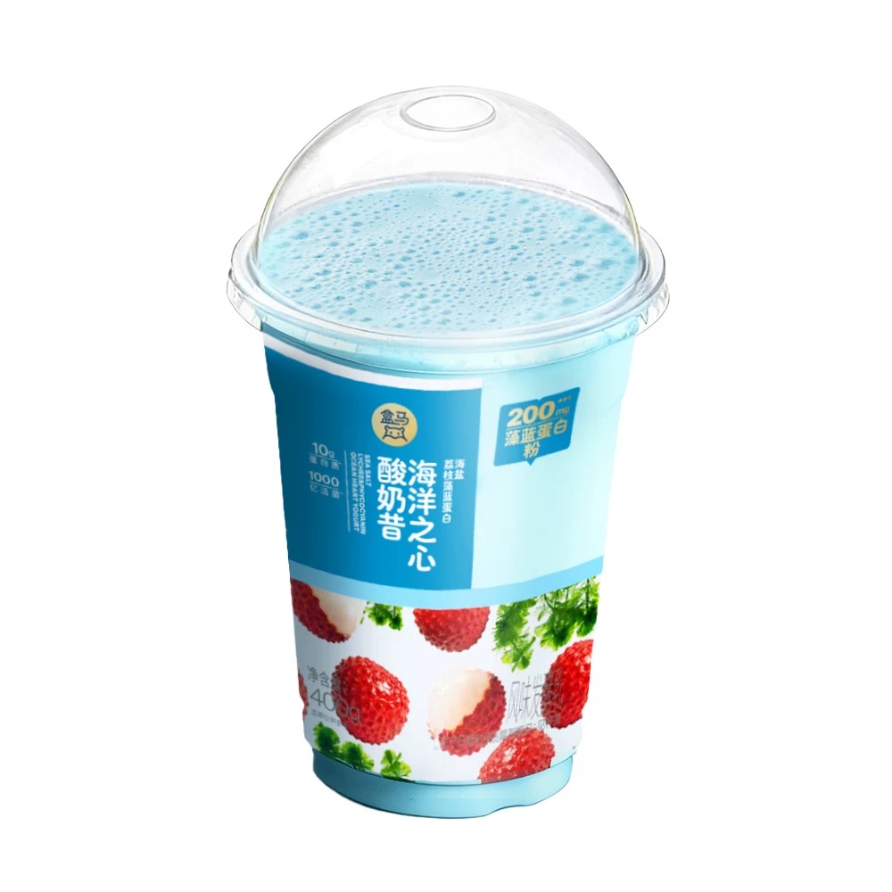 2. 盒马上新「海洋之心 海盐荔枝藻蓝蛋白酸奶昔」
